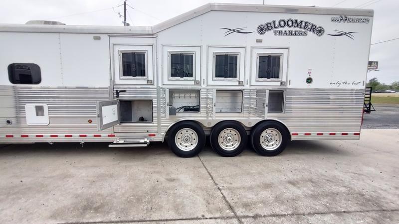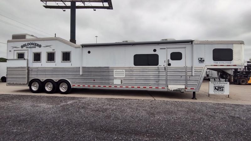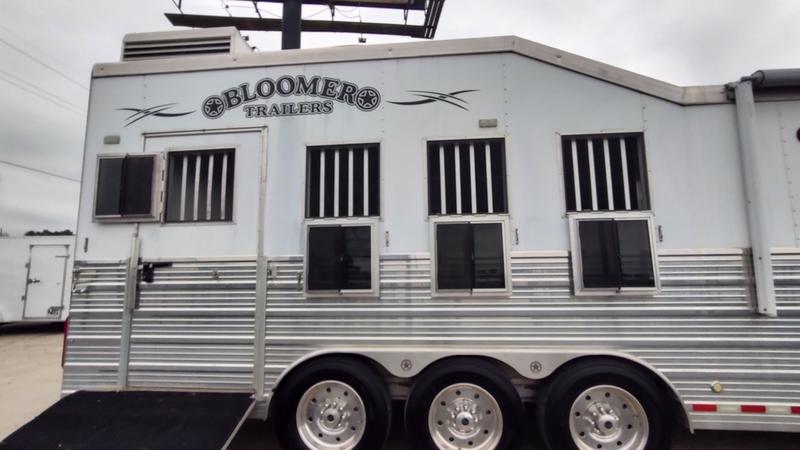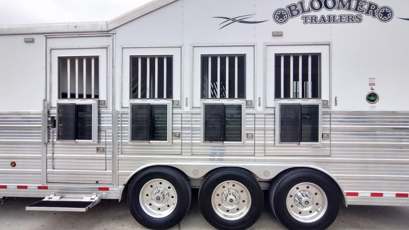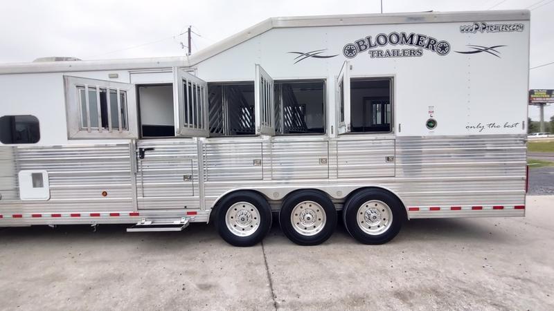Pre-Owned 2018 Bloomer 4 Horse Side Load Gooseneck Trailer with 16'6" Outlaw Conversions