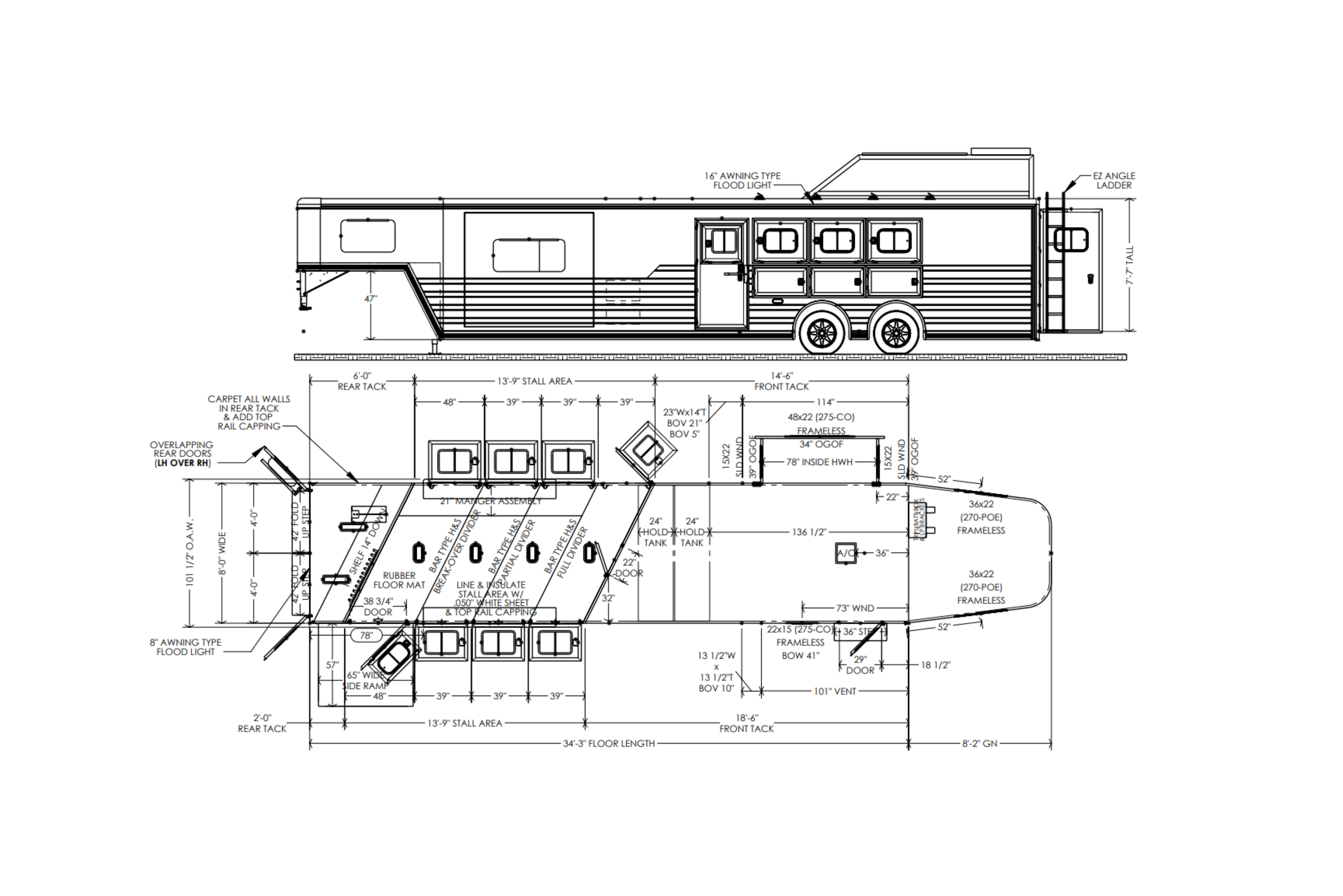 4 Horse Side Load with 14'6" Outlaw Conversions